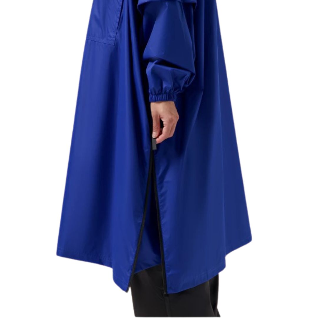 Maium poncho in Electric Blue, mooi diep kobalt blauw. De poncho is een volledig waterdichte regenjas. Een extra waterdichte laag altijd bij de hand. Deze regenjas vouwt gemakkelijk op in het ingebouwde tasje. Verandert gemakkelijk in een nog grotere poncho voor gebruik op de fiets of e-scooter.