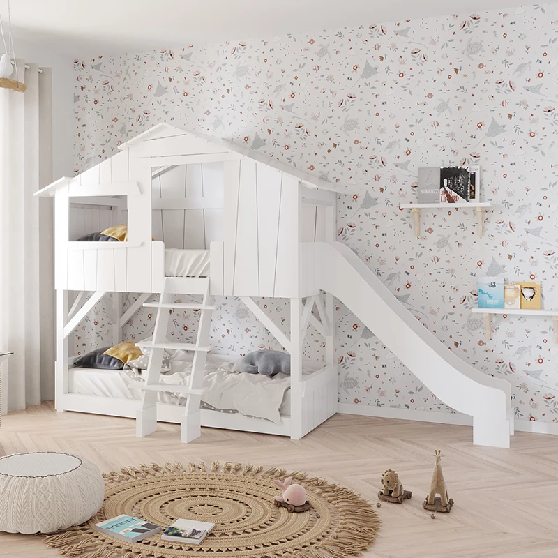 Met dit boomhut stapelbed creëer je niet alleen een fijne slaapplek, maar ook een plek waar avonturen tot leven komen. Klaar om in te klimmen, te dromen en gezellig samen te slapen!