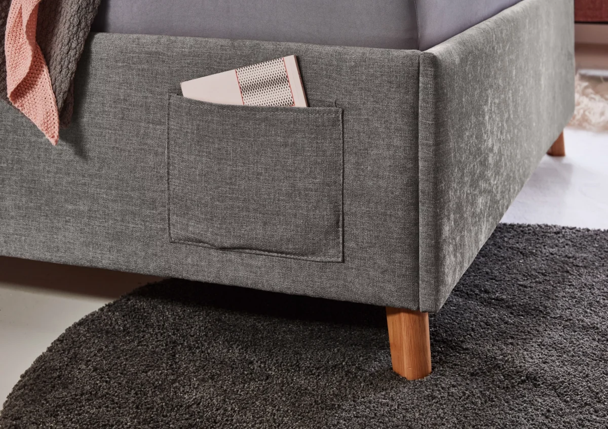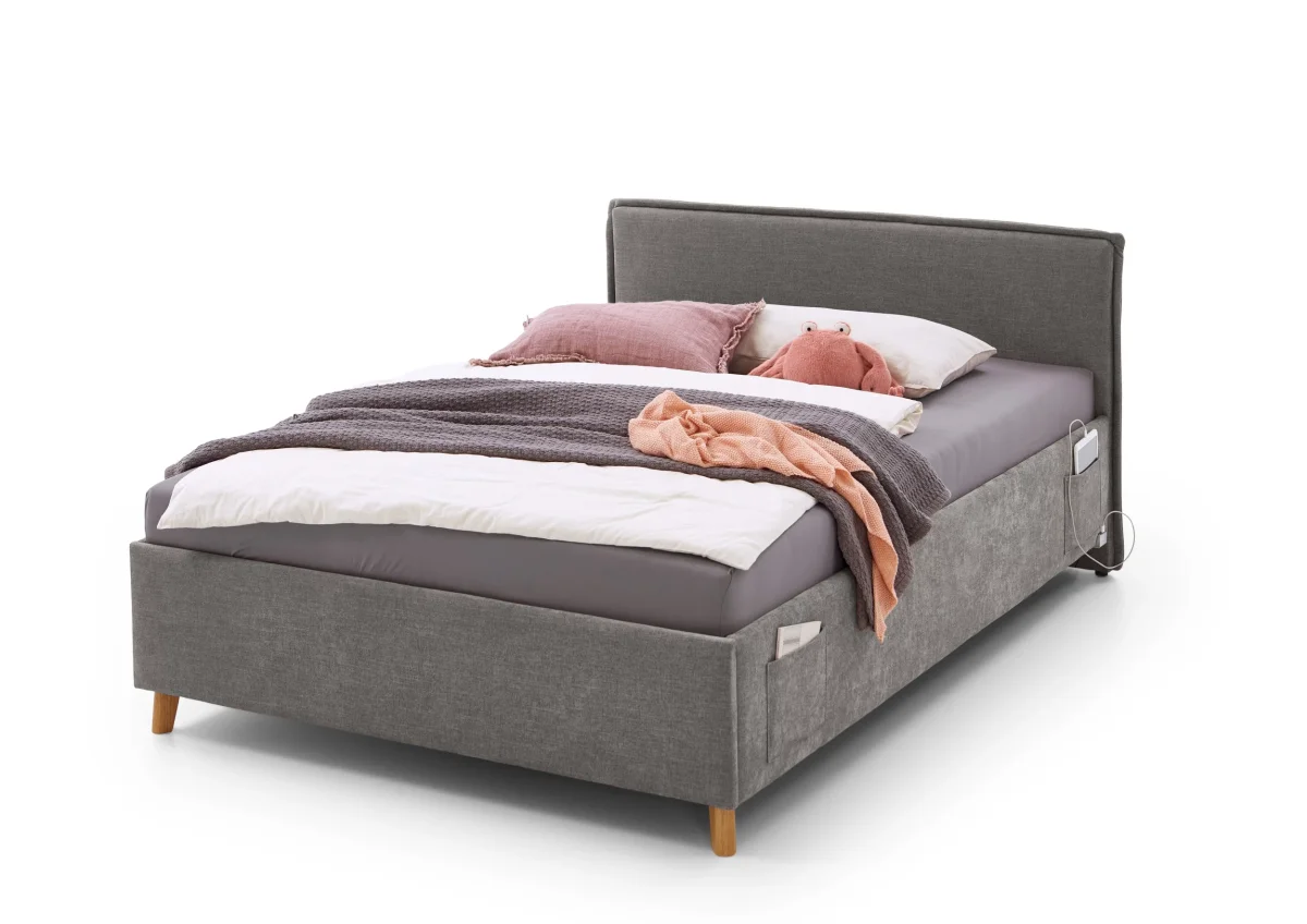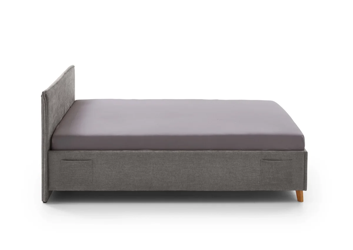 Het verfijnde grijskleurige design voegt een warme en elegante uitstraling toe aan je slaapkamer, terwijl de ingebouwde opbergzakken en USB-verbinding zorgen voor extra functionaliteit.