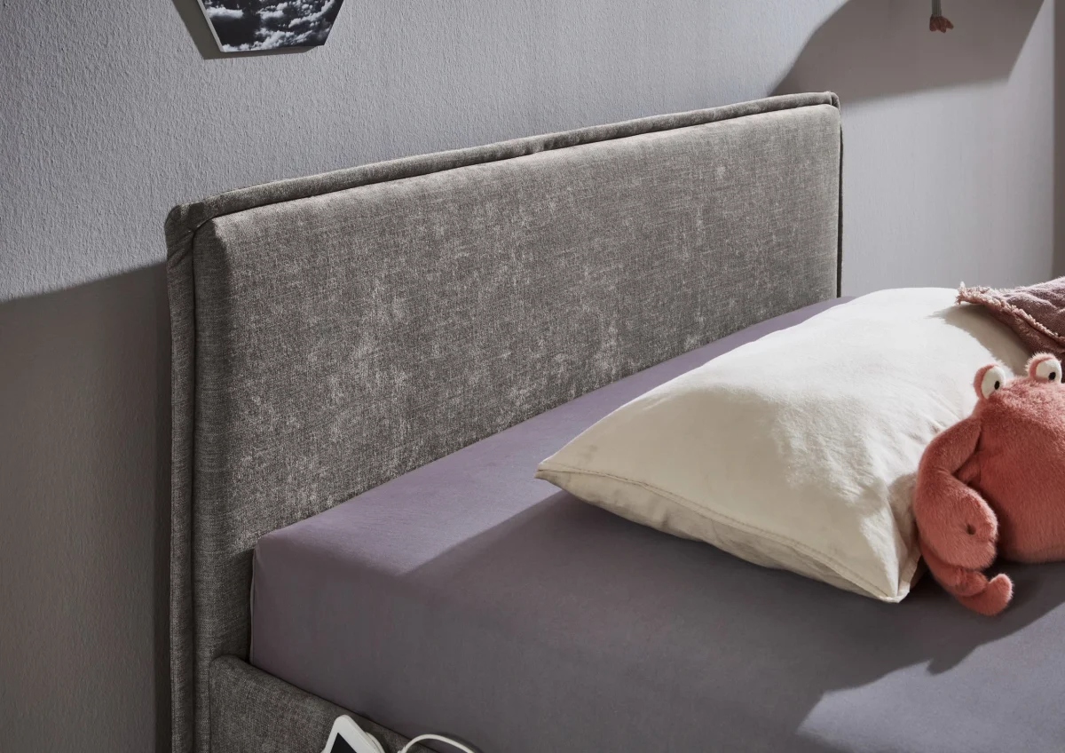 Ontdek ultiem comfort en slimme opbergruimte met het gestoffeerde kofferbed uit de Fun-collectie.