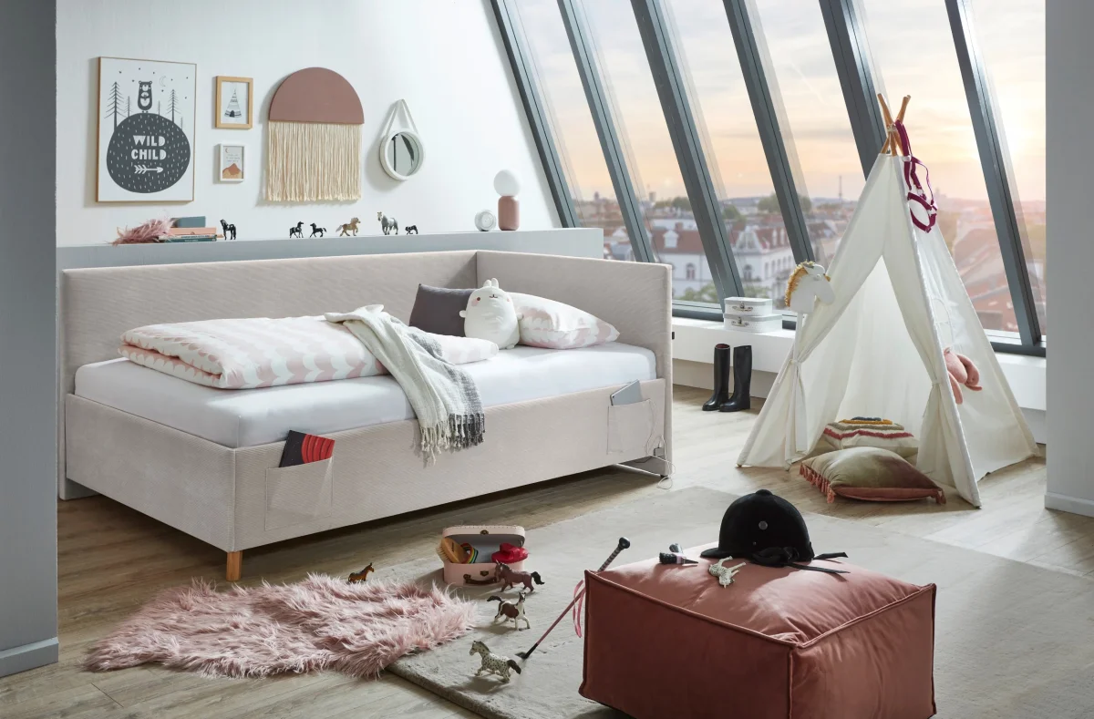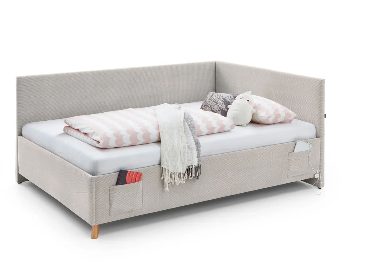 De eigentijdse beige kleur brengt warmte in je interieur, terwijl slimme details zoals geïntegreerde zakken en een USB-verbinding extra gebruiksgemak bieden.