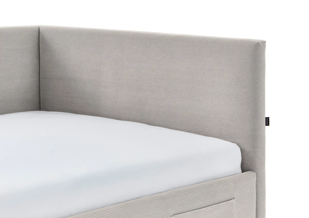 Met een matrasmaat van 120×200 cm en totale afmetingen van 210 cm (L) x 130 cm (B) x 90 cm (H) is dit bed een ideale keuze voor wie ruimte wil besparen zonder in te leveren op design. De ribstoffen bekleding geeft het geheel een luxueuze uitstraling en maakt van het bed een echte blikvanger.