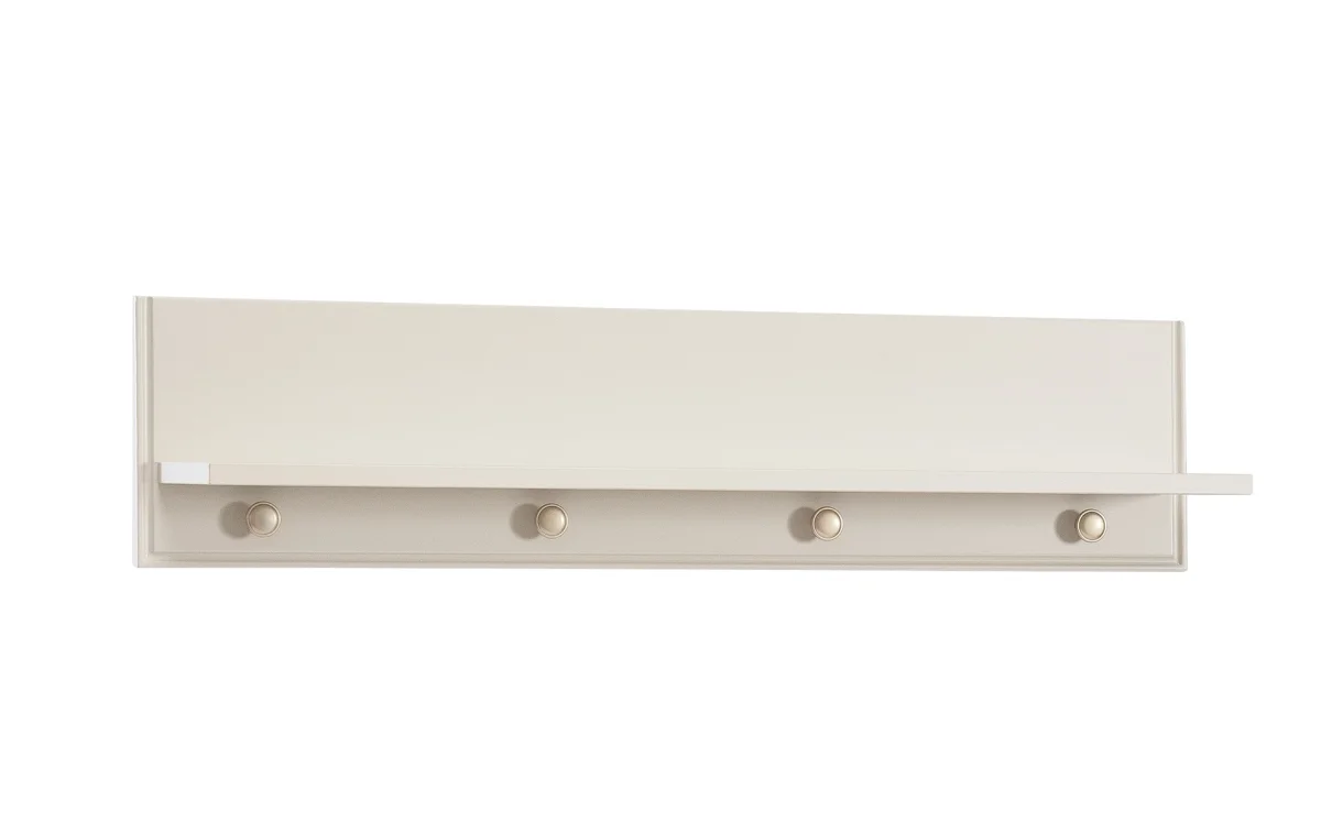 De wandplank in Champagne kleur uit de Petite-collectie is een eenvoudige en klassieke toevoeging aan elk interieur. Het biedt gemakkelijk plaats aan benodigdheden of accessoires die nodig zijn voor de verzorging van de baby, en aan de houten haken kun je kleding of handdoeken ophangen.