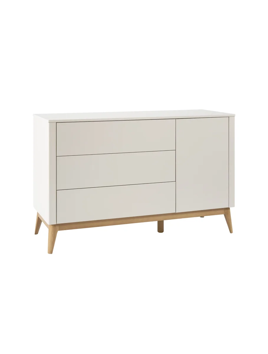 De commode is voorzien van drie ruime lades en heeft daarnaast een deurtje welke allen zijn uitgerust met soft-close. Achter het deurtje vind je nog een legplank.