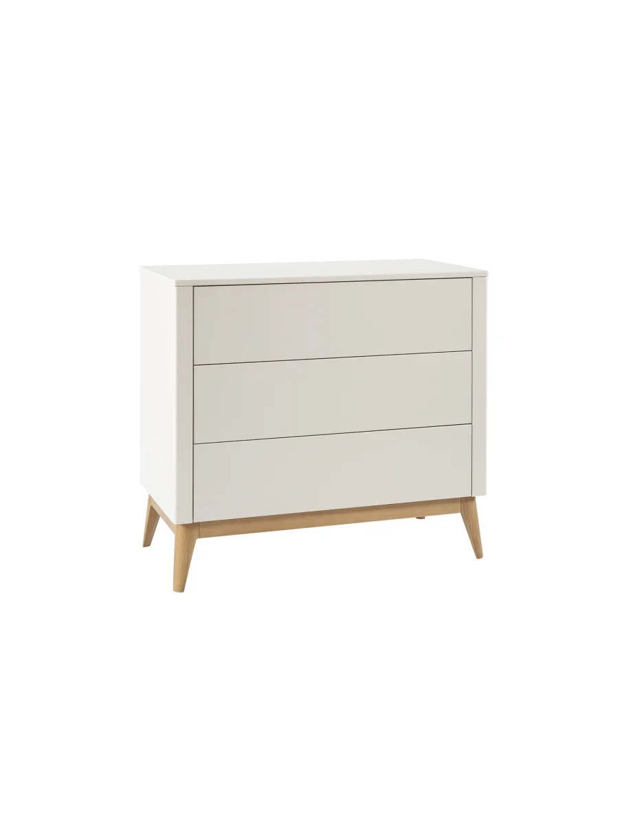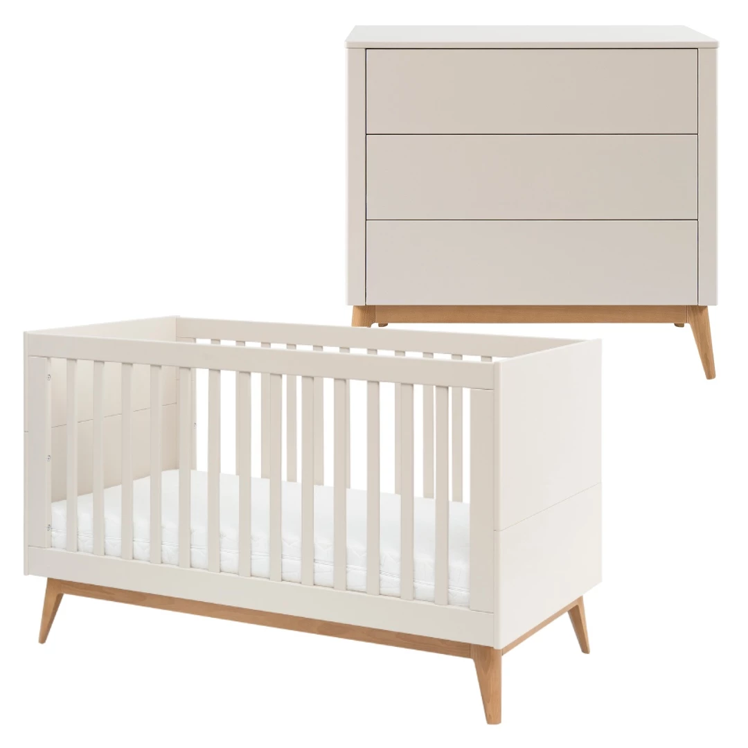Deze Pinio Seth 2-delige meegroeikamer bestaat uit een doorgroei-ledikant (70×140) en een commode met drie lades.