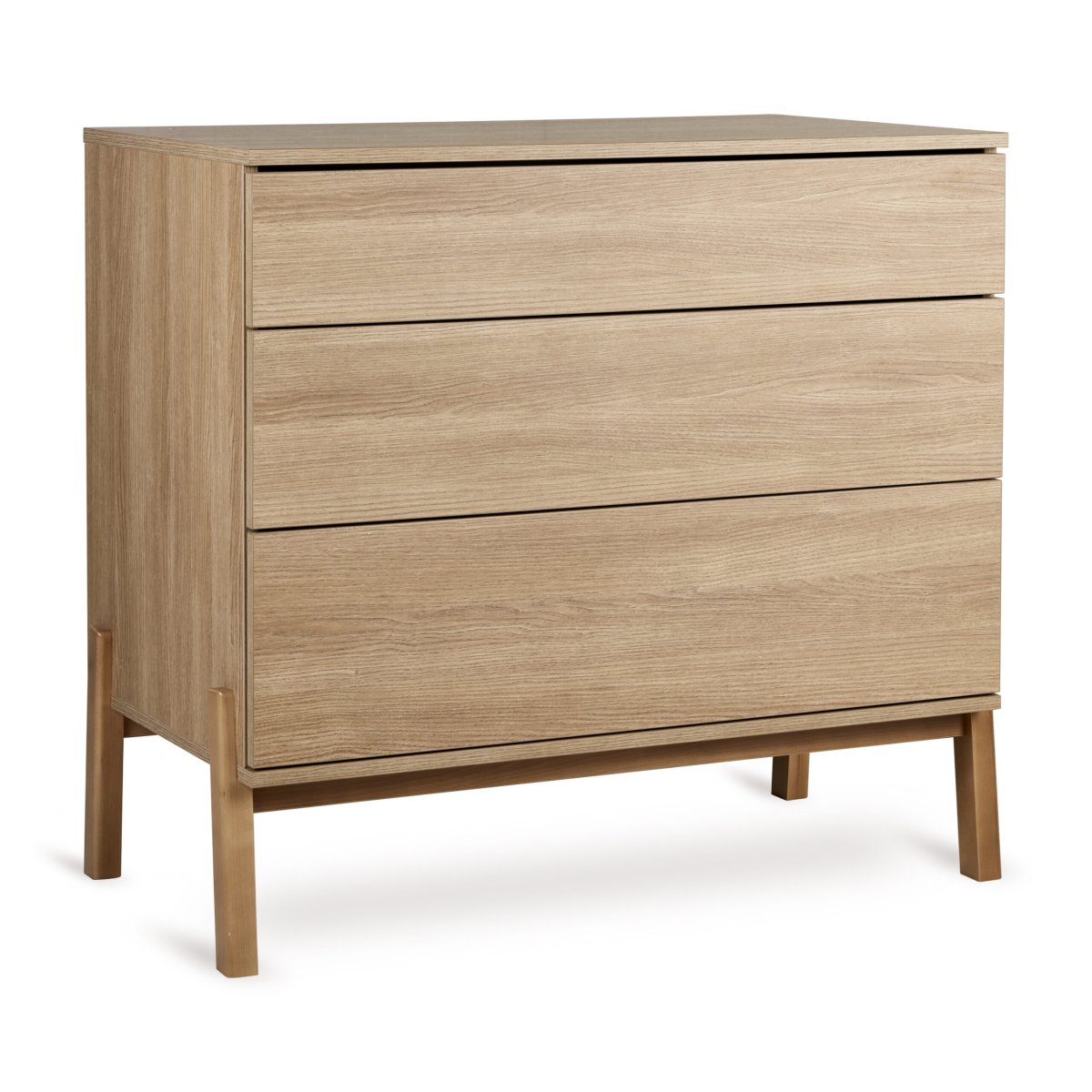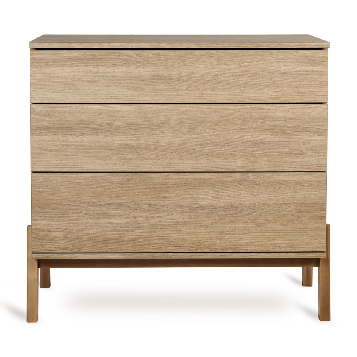 Het bedje heeft een verstelbare bodem met drie verschillende hoogtes. De commode is voorzien van drie greeploze laden met push-to-open systeem.
