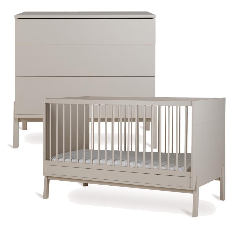 De prachtige Quax Ashi 2-delige meegroeikamer in de kleur Clay bestaat uit een bed van 70×140 en een commode. Beidegemaakt uit een mix van massief beuken en melamine.