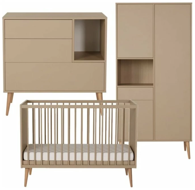 De Quax Cocoon 3-delige babykamer in de kleur latte is een aanwinst en elk huishouden. De set bestaat uit een ledikant (60×120), kledingkast en een commode. Zo kan je baby slapen, kun je verschonen en heb je genoeg opbergruimte. In de Cocoon collectie van Quax is ook een bladvergroter beschikbaar zodat je meer ruimte hebt tijdens het verschonen en je baby recht voor je ligt. Dit maakt het een stuk gemakkelijker. Deze is los bij te bestellen net als een passend matrasje. Voor zowel de kledingkast als de commode zijn nissen beschikbaar in verschillende kleuren zodat je er je eigen twist aan kunt geven.