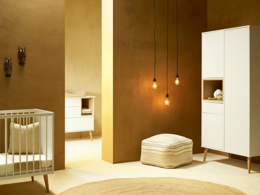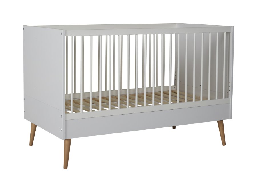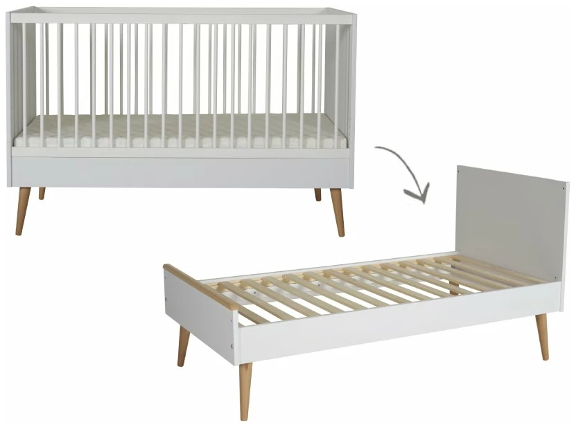 Het Cocoon omvormbare ledikant van Quax is ideaal als je maar eenmalig een bedje wil aanschaffen. De eerste tijd wordt het bed gebruikt als ledikant waarbij de bodem verstelbaar is in de maten 32, 52 en 72 centimeter. Wanneer je kindje klaar is om zelf in en uit bed te komen, kunnen de zijkanten weggehaald worden waardoor het een peuterbed wordt. Het bedje heeft massief beuken pootjes en past door het minimalistische en moderne design in vrijwel iedere babykamer. In de kleur Ice White zorgt het voor een strakke, moderne uitstraling. Een matras in de maat 70×140 past perfect in het ledikant en is apart bij te bestellen. Dit ledikant laat zich goed combineren met de andere producten uit de serie Cocoon.