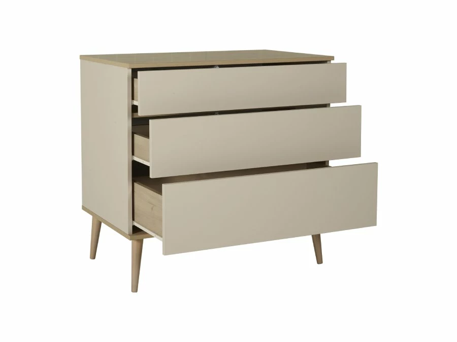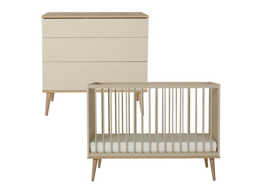 De Quax Flow 2-delige babykamer in de kleur clay & oak heeft een prachtige uitstraling. De egale lak combineert met hout fineer staat zeer luxe. De set bestaat uit een ledikant (60×120) en een commode. Zo kan je baby slapen, kun je verschonen en heb je genoeg opbergruimte. Mocht je meer ruimte nodig hebben kun je ook de 3-delige set gaan. Hier zit nog een kledingkast bij. In de Flow collectie van Quax is ook een bladvergroter beschikbaar zodat je meer ruimte hebt tijdens het verschonen en je baby recht voor je ligt. Dit maakt het een stuk gemakkelijker. Deze is los bij te bestellen net als een passend matrasje.