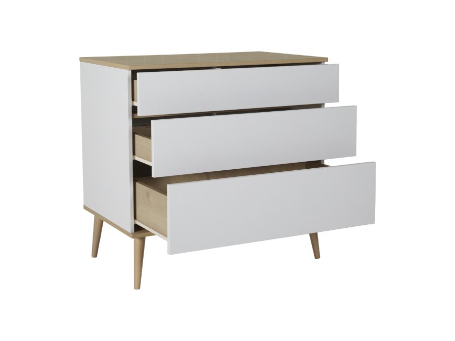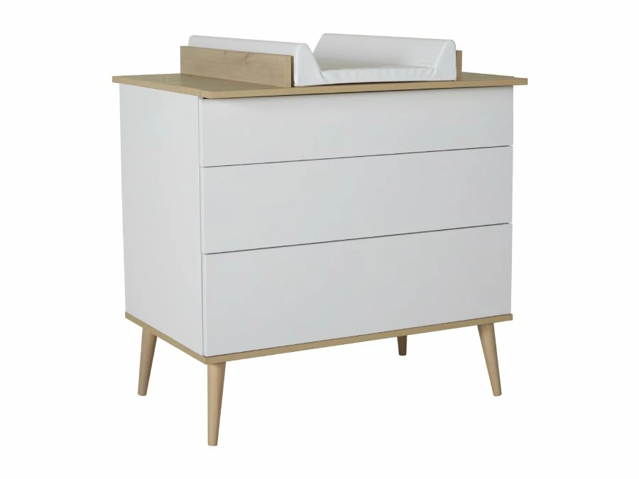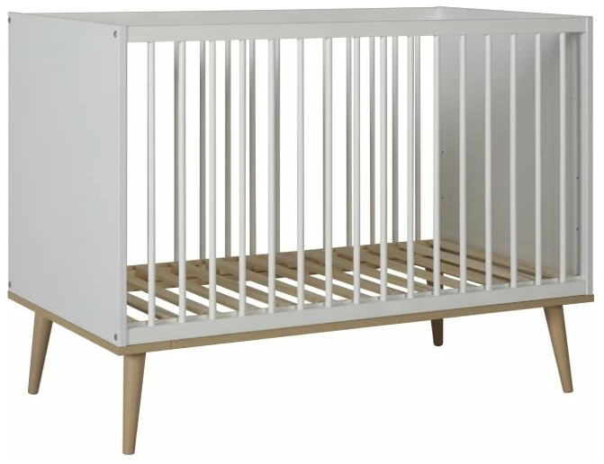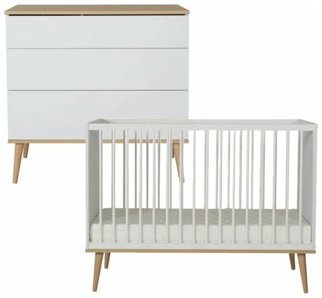 De Quax Flow 2-delige babykamer in de kleur white & oak heeft een prachtige uitstraling. De egale lak combineert met hout fineer staat zeer luxe. De set bestaat uit een ledikant (60×120) en een commode. Zo kan je baby slapen, kun je verschonen en heb je genoeg opbergruimte. Mocht je meer ruimte nodig hebben kun je ook de 3-delige set gaan. Hier zit nog een kledingkast bij. In de Flow collectie van Quax is ook een bladvergroter beschikbaar zodat je meer ruimte hebt tijdens het verschonen en je baby recht voor je ligt. Dit maakt het een stuk gemakkelijker. Deze is los bij te bestellen net als een passend matrasje.