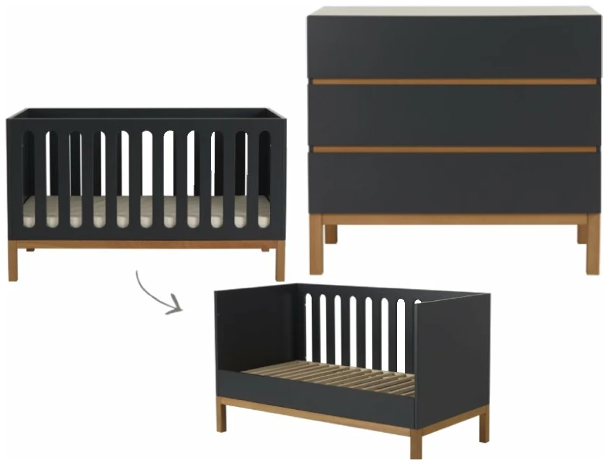 De 2-delige Quax Indigo meegroeikamer in de kleur moonshadow ziet er prachtig uit. De set bestaat uit een ombouw ledikant (70×140) en een commode. Zo kan je baby slapen, kun je verschonen en heb je genoeg opbergruimte. De bodem van het ledikantje is verstelbaar. Het ledikant is later om te bouwen tot bedbankje. Hiervoor is ook nog een bedrail verkrijgbaar zodat je peuter minder snel uit bed rolt. Mocht je meer ruimte nodig hebben kun je ook de 3-delige set gaan. Hier zit nog een kledingkast bij. In de Indigo collectie van Quax is ook een bladvergroter beschikbaar zodat je meer ruimte hebt tijdens het verschonen en je baby recht voor je ligt. Dit maakt het een stuk gemakkelijker. Deze is los bij te bestellen net als een passend matrasje.