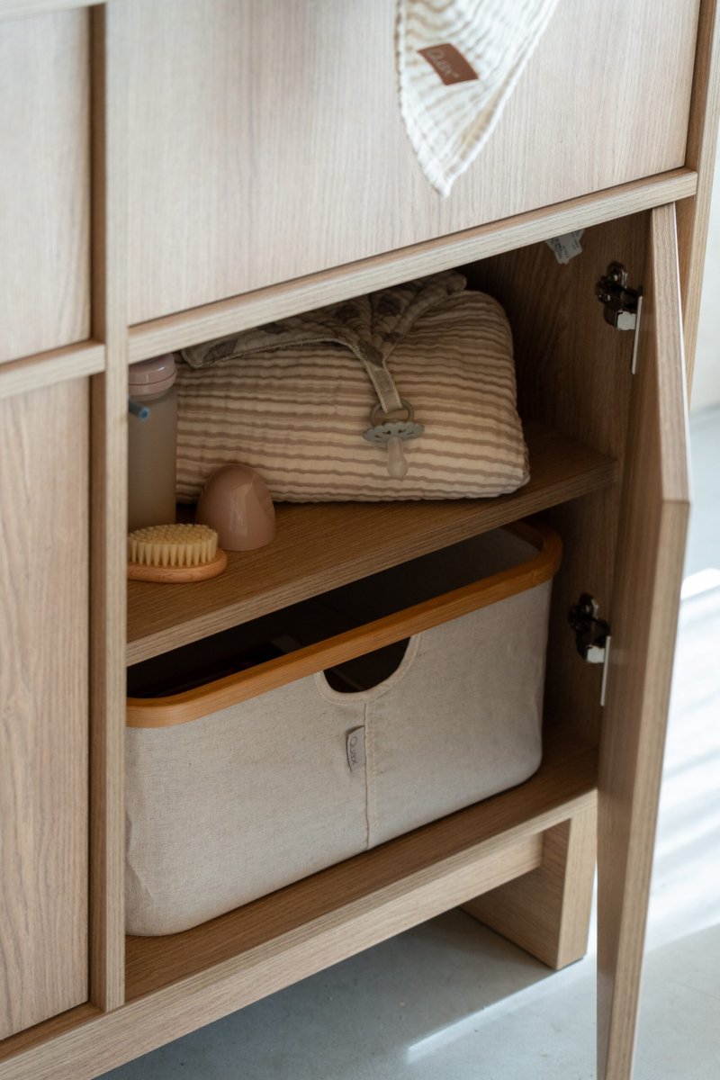 Voor extra gebruiksgemak is de commode optioneel uit te breiden met een bladvergroter. Hiermee creëer je meer ruimte voor een aankleedkussen en accessoires, waardoor verschonen en aankleden nog comfortabeler wordt.