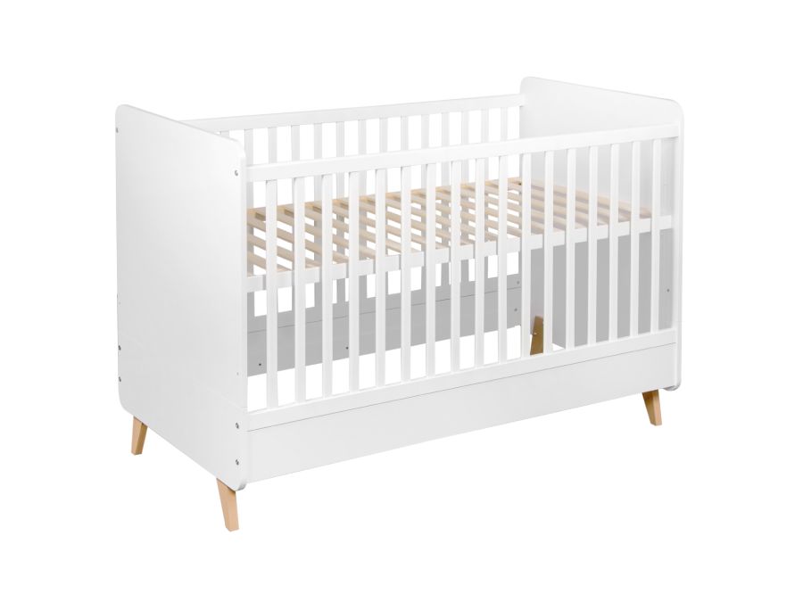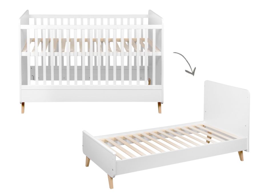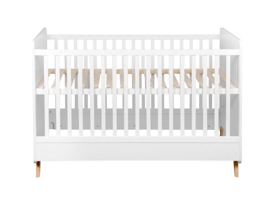 Dit ombouwbed van Quax uit de Loft serie in de kleur wit is een slagje groter dan een ledikant zodat deze later omgevormd kan worden tot een bedje voor een peuter. Zo hoef je maar eenmaal een ledikant aan te schaffen en heb je er extra lang plezier van. De neutrale wit kleur past perfect in een babykamer voor zowel jongens als meisjes. In dit ledikant past een matras van 70×140 cm. Deze kun je direct gemakkelijk mee bestellen. Daarnaast is de bodem verstelbaar in drie hoogtes: 22, 44 en 59 cm. Zo kun je het bedje nog goed gebruiken wanneer de baby zich al kan optrekken. Wanneer het bed omgevormd wordt naar een open bedje, kunnen de zijkanten eraf gehaald worden.