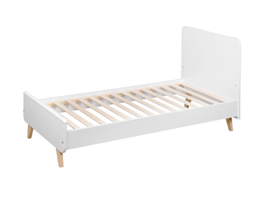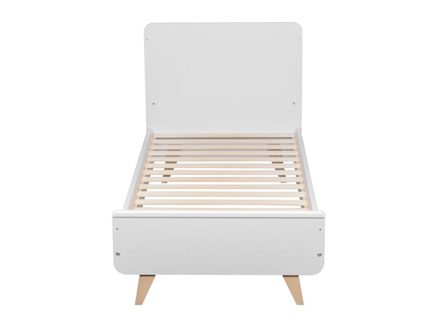 Het ledikant heeft vier pootjes van massief beuken en is gemaakt van een stevige combinatie van melamine en beuken. De afmetingen zijn 144x75x101 cm.