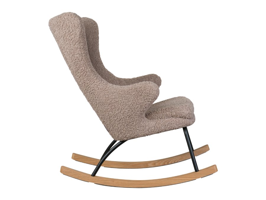 De Quax Rocking schommelstoel deluxe sheep is een mooie klassieke schommelstoel. Door de prachtige kleur met Teddy stof is de stoel een verrijking in elke babykamer. De stoel zit comfortabel en is beschikbaar in meerdere kleuren. Perfect om lekker in te schommelen met je kindje om tot rust te komen. De schommelstoel heeft een zithoogte van 54 centimeter en een zitdiepte van 50 centimeter. Verder heeft de stoel houten sledes. Het vilt onder de sledes zorgt ervoor dat er geen krassen ontstaan. In deze serie is tevens een hocker bij te bestellen zodat je benen ook kunnen relaxen.