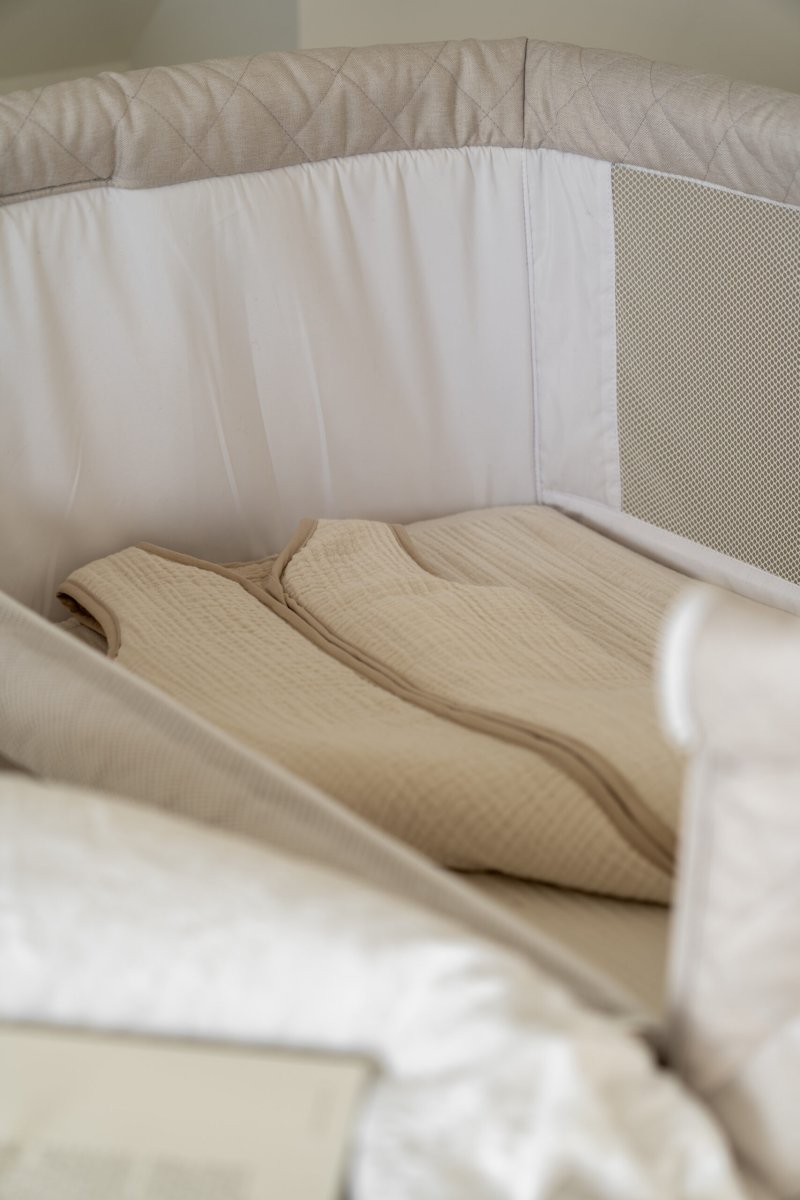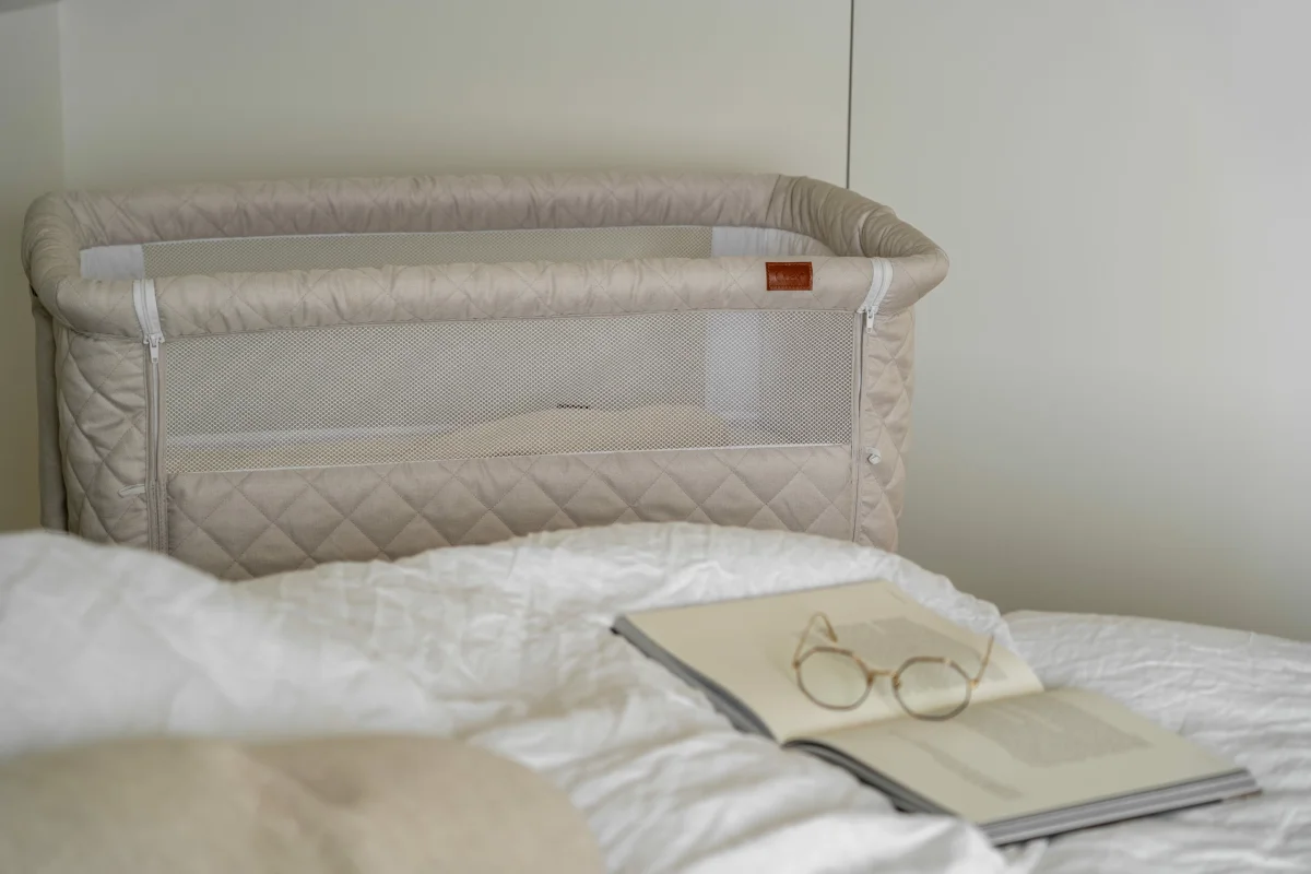 Deze handige Quax side-by-side quilted co-sleeper in de kleur Clay zal in de eerste maanden een zegen zijn. Je schuift de wieg dichtbij je bed en laat één kant open. Op deze manier kun je voeden, troosten en je kleintje wonderen zonder uit bed te hoeven.