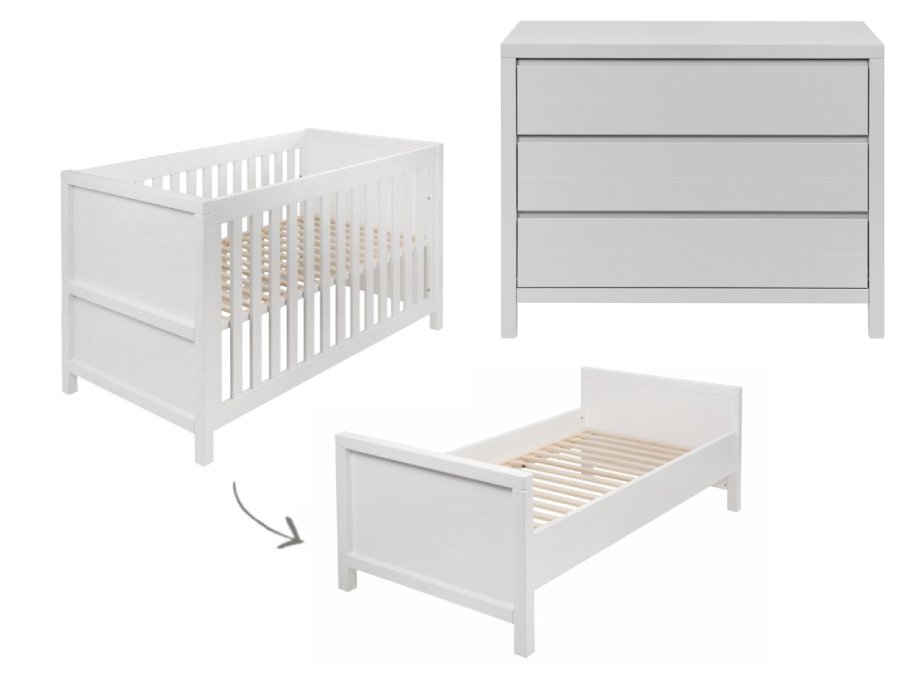 De 2-delige Quax Stripes meegroeikamer is van sterk materiaal gemaakt en ziet er strak uit. De set bestaat uit een doorbouw ledikant (70×140) en een commode. Zo kan je baby slapen, kun je verschonen en heb je genoeg opbergruimte. Mocht je meer ruimte nodig hebben kun je ook de 3-delige set gaan. Hier zit nog een kledingkast bij. De bodem van het ledikantje is verstelbaar en is om te bouwen tot peuterbed.. In de Stripes collectie van Quax is ook een bladvergroter beschikbaar zodat je meer ruimte hebt tijdens het verschonen en je baby recht voor je ligt. Dit maakt het een stuk gemakkelijker. Deze is los bij te bestellen net als een passend matrasje.
