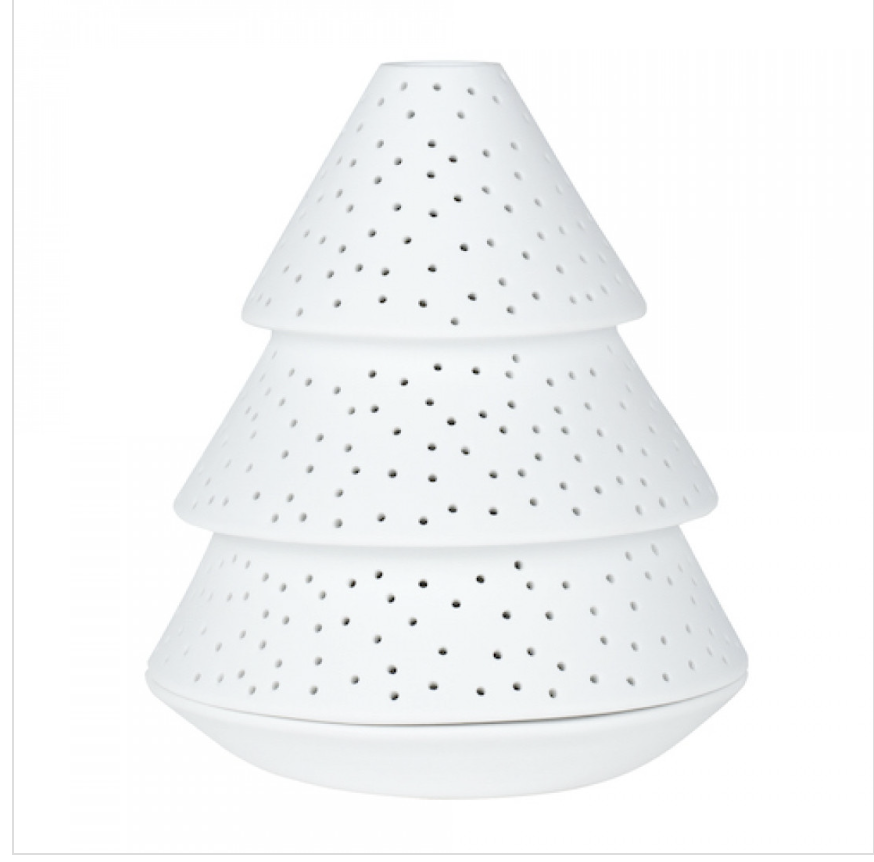 Mooie strakke kerstboom van wit mat porselein met geperforeerde kleine gaatjes. Door kleine gaatje schijnt het licht er mooi subtiel doorheen wanneer je er een waxine lichtje in brandt. Erg sfeervol voor in je kamer en leuk te combineren met het grotere formaat of andere objecten van Räder.