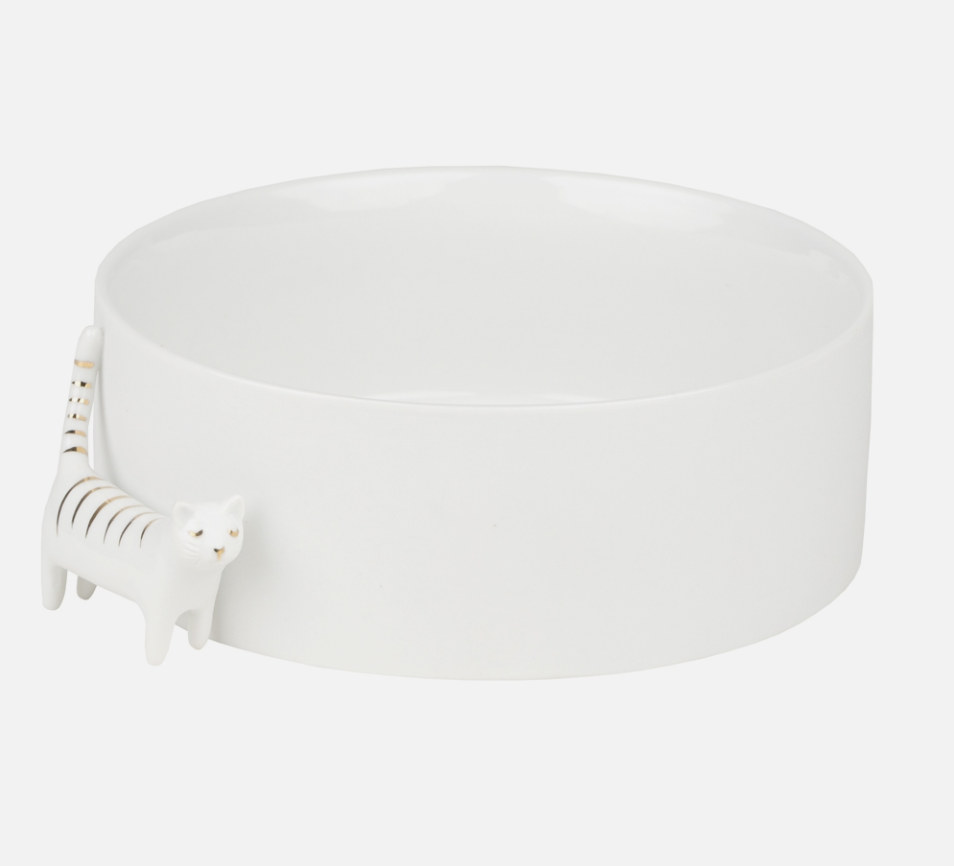 Een prachtig, porseleinen schaaltje die elke dierenvriend op tafel wil hebben. De binnenzijde van het schaaltje is fraai gedecoreerd. De kat krult zijn staart om het bakje.