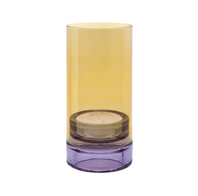 Deze met de hand geblazen lantaarn in een kleurblokkendesign is een eenvoudige manier om een mooie vleug kleur toe te voegen aan een kamer. Multifunctioneel: het waxinelichtje kan in de cilinder worden geplaatst of – als je de lantaarn omdraait – bovenop de basis.