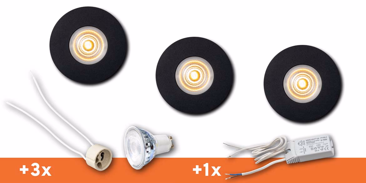 B DUTCH LED inbouwspot voor badkamer of terrasoverkapping, veranda buiten. Round Essential IP65 Matt Black (diameter 85 mm x hoogte 30 mm) SET 3 SPOTS
