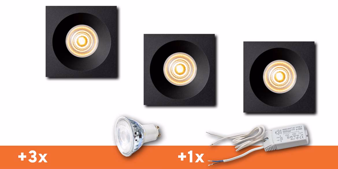B DUTCH LED inbouwspot voor badkamer of terrasoverkapping, veranda buiten. Rounded Square Essential IP65 Recessed Matt Black (86x86x45mm) SET 3 SPOTS