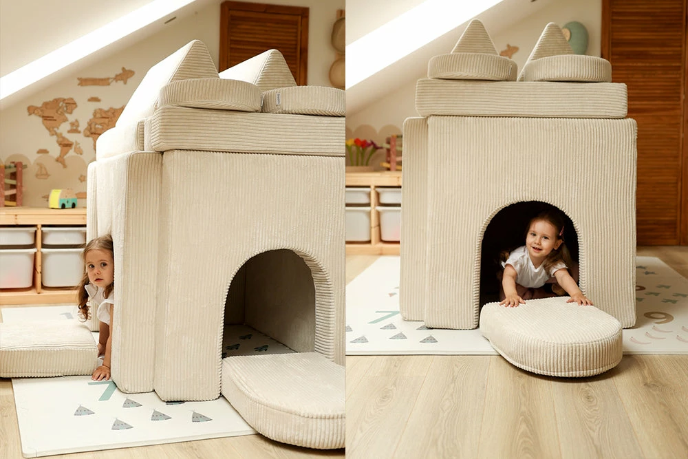 Je kunt de bogen en deuren gebruiken als schilden voor een fort, met verwijderbare deuren, of als ingebouwde arm- en rugleuningen. Ze zijn zelfs ideaal als een mini-“babyverblijf” voor de allerkleinsten.