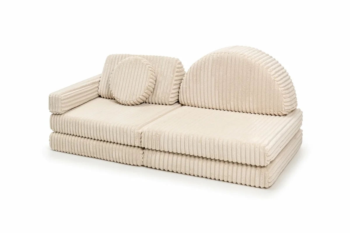 De Shappy Schommel in de kleur Cream Beige, gemaakt van zachte wafel Ribstof, is de ideale toevoeging om de speeltijd van je kind naar een hoger niveau te tillen! Deze schommel biedt eindeloze mogelijkheden voor creatief spel en nieuwe avonturen. Of je kleintje nu wil schommelen, een brug wil bouwen of de perfecte poef wil maken, de Shappy Rocker maakt het mogelijk. Het handige handvat zorgt voor extra schommelplezier.