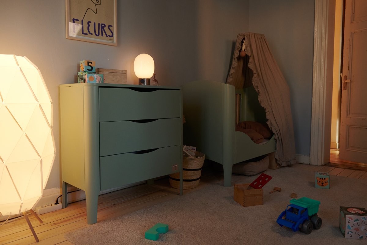 De Wave commode, gehuld in de kleur Black, straalt tijdloze elegantie uit met zijn zacht gebogen randen. Deze prachtige commode is voorzien van drie diepe lades, waardoor er voldoende opbergruimte is voor alle benodigdheden van je kleintje. De kenmerkende Wave-details zijn te zien op de gebogen lades en poten, evenals op de afgeronde hoeken, waardoor de commode een vleugje verfijning toevoegt aan elke babykamer.