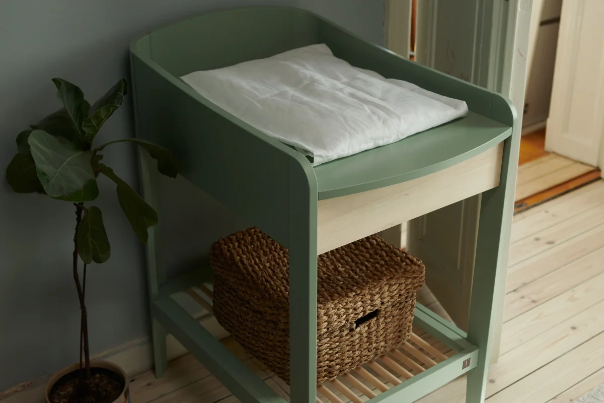 De Wave verzorgingstafel is een harmonieuze combinatie van zachte rondingen en natuurlijke houtelementen. Gelakt in stoer zwart, op waterbasis natuurlijk. Deze praktische tafel biedt veel opbergruimte en is uitgerust met een volledig houten lade die moeiteloos kan worden verwijderd. Gemaakt van hoogwaardig massief berkenhout en natuurlijk voldoet deze tafel aan de strengste kwaliteitsnormen van Troll Nursery. Het reinigen ervan is een fluitje van een cent – gewoon afnemen met een vochtige doek. Met een blad van 50B x 70D, biedt deze tafel voldoende ruimte voor een moeiteloze verzorgingsroutine.