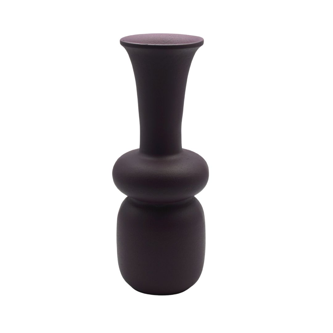 Deze prachtig vormgegeven aluminium vaas is een echte blikvanger in elk interieur. De diepe dark purple kleur komt bijzonder mooi tot zijn recht in het elegant rond gevormde model, waardoor de vaas zowel kracht als verfijning uitstraalt.