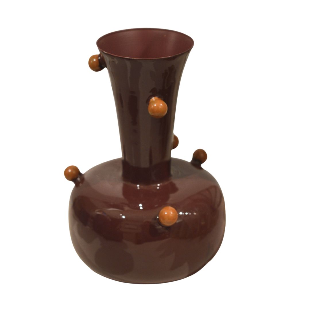 Vaas Dots is een bijzondere metalen vaas met een speels en eigentijds karakter. De warme plum terra kleur geeft de vaas een stijlvolle, luxe uitstraling en laat zich gemakkelijk combineren met diverse interieurstijlen.