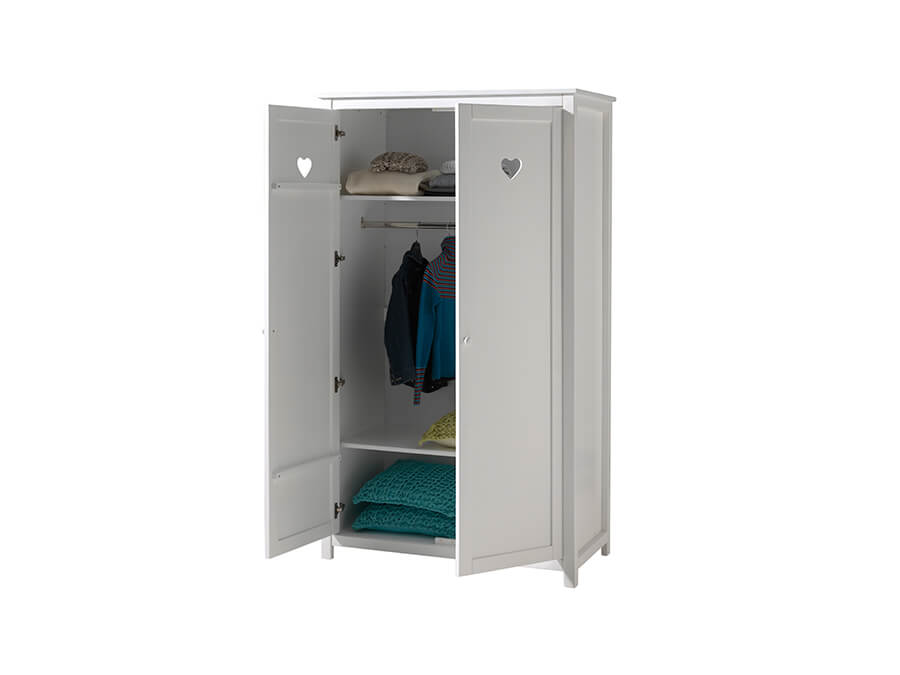 Vipack Amori Linnenkast 2 deurs Een stevige uitvoering van een linnenkast. De indeling van de kast is zoals op de afbeelding, deze wordt geleverd met 2 legplanken en 1 roede. Het materiaal waar de kast van gemaakt is MDF.