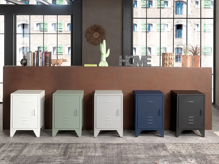 Het Vipack Bronxx blue denim nachtkastje is een leuke toevoeging op de kamer naast het. Het kastje is gemaakt van metaal en heeft een leuk deurtje. Achter het deurtje zit een legplank zodat er genoeg ruimte is om spulletjes op te bergen. Doordat het met matte lak is afgewerkt geeft het een mooie uitstraling en is het helemaal van deze tijd.