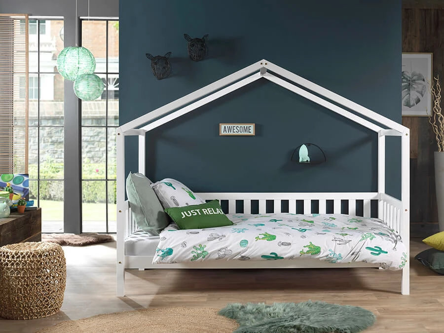 Mooi wit huisbed uit de Dallas serie. De matrasmaat is 90×200. De lattenbodem is inbegrepen. Het onderschuifbed is los bij te bestellen.