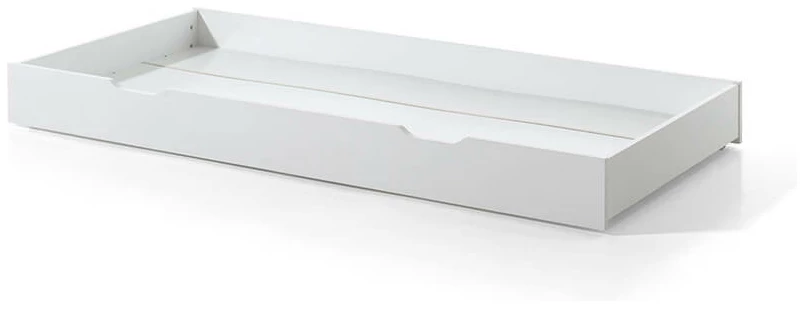 Onderschuif bed in witte uitvoering. Deze is geschikt voor elk bed uit de Dallas serie en de meeste 90×200 matrassen passen erin. Let erop dat het matras niet dikker is dan 10 cm. We adviseren voor de lade een Vipack Basic matras, deze past zeker weten.