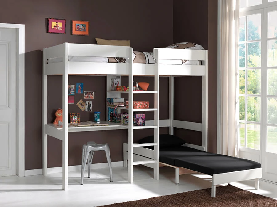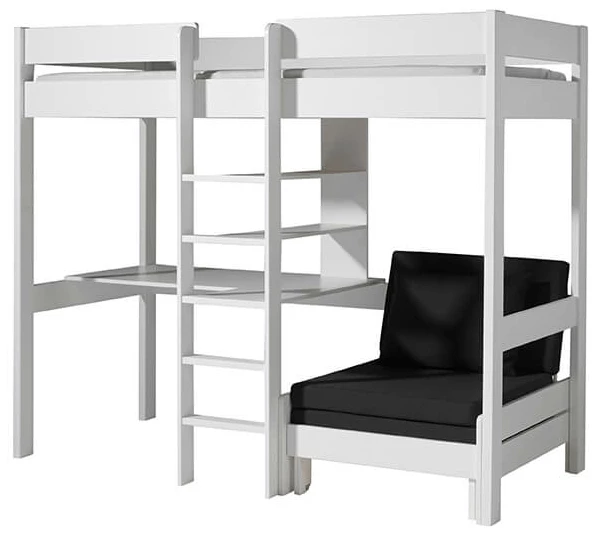 Een hoogslaper is een inmiddels ingeburgerd fenomeen op de kinderkamer. Maar deze uitvoering van een hoogslaper is dan wel weer uniek. Deze Vipack PINO hoogslaper beschikt namelijk over een zetelbed, welke inclusief is. Een heerlijke loungestoel die indien nodig kan worden uitgeklapt tot bed. Naast deze vindingrijke oplossing beschikt de PINO hoogslaper ook nog ever een compact bureau. Precies groot genoeg voor een laptop en wat schrijfspullen! Het bureau en het zetelbed worden van elkaar gescheiden door een aantal legplanken. Er is dus ook nog ruimte onder de PINO hoogslaper om bijvoorbeeld (school)boeken, spelletjes of fotolijstjes te bewaren! De PINO hoogslaper is gemaakt van honderd procent grenenhout, uw kind beschikt dus over een duurzaam en kwalitatief hoogwaardig kinderbed. Uiteraard voldoet de uitvalbeveiliging aan alle geldende veiligheidsnormen. Veiligheid staat immers altijd op eerste plaats. Dit zelfde model is ook verkrijgbaar in de kleur taupe. Deze vindt u elders in de Vipack PINO collectie.