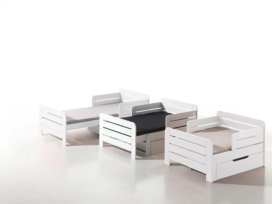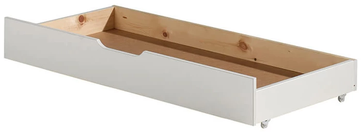 Dankzij deze Vipack JUMPER bedlade wordt het JUMPER doorgroeibed nog handiger! Deze bedlade rolt u eenvoudig onder het kinderbed vandaan en is dus de ideale manier om extra opbergruimte te creëren op de kinderkamer! Nu hoeven er geen speelgoed, sportspullen of spelletjes meer rond te slingeren, al deze spullen kunnen netjes een plek krijgen in deze lade. Zo is het overzichtelijk opgeruimd en kan uw kind er toch snel bij! Het handvat van de JUMPER bedlade zit mooi verwerkt in de insnede aan de bovenkant van de lade. Zo steken er geen handvatten uit en blijft de JUMPER bedlade mooi ‘strak’. Deze JUMPER bedlade is net als het doorgroeibed afgewerkt in het wit. Hierdoor vormen beide producten een mooi, natuurlijk geheel.