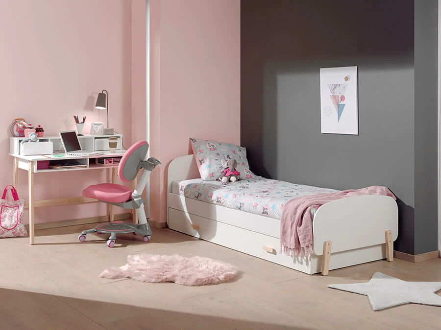 Dit oud roze Vipack KIDDY bed is vervaardigd uit gelakt MDF in combinatie met massief grenen. Het hoofd- en voeteinde van het bed is afgerond en de poten zijn in massief grenen. De lattenbodem is inclusief en heeft een afmeting van 90x200cm.