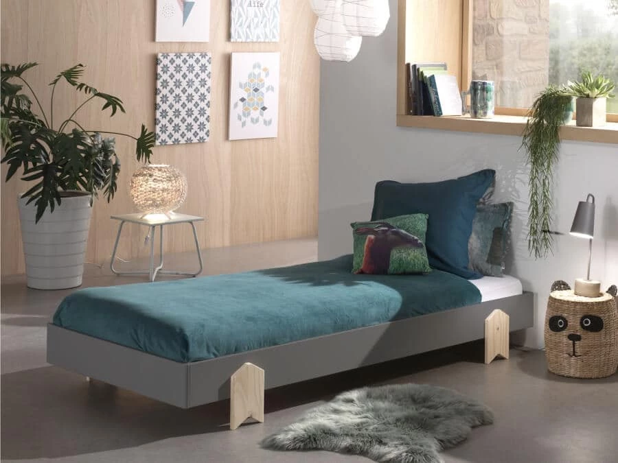 Deze set bestaat uit 4x het handige Vipack Modulo Arrow eenpersoonsbed. Dit bed is stapelbaar. Wanneer je er dus meerdere hebt kun je in no-time een logeerbed tevoorschijn toveren. Het bed is afgewerkt met milieu vriendelijke grijze lak en heeft massief grenen pootjes in de vorm van een pijl. Dit bed is ook beschikbaar met andere poten; een smiley of puzzelstuk. De lattenbodem is inbegrepen. De matrasmaat is 90×200 en een geschikt matras kun je los bij bestellen. Voor dit bed adviseren we de Vipack Soft of Soft Deluxe.