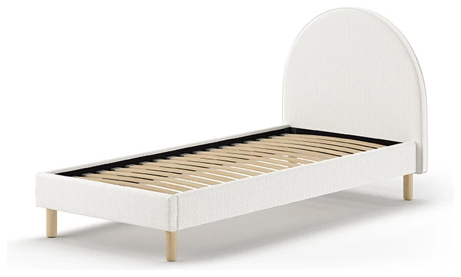 Wil je een bed dat echt stijlvol is? Geen dertien in een dozijn? Dan is dit witte Vipack Moon bed perfect. Het bed heeft een luxe bouclébekleding die er aaibaar zacht uitziet. De ronde vorm van het hoofdbord versterkt de zachte uitstraling van het bed nog verder. De lattenbodem is standaard inbegrepen. Een matras van 90×200 kun je direct meebestellen.