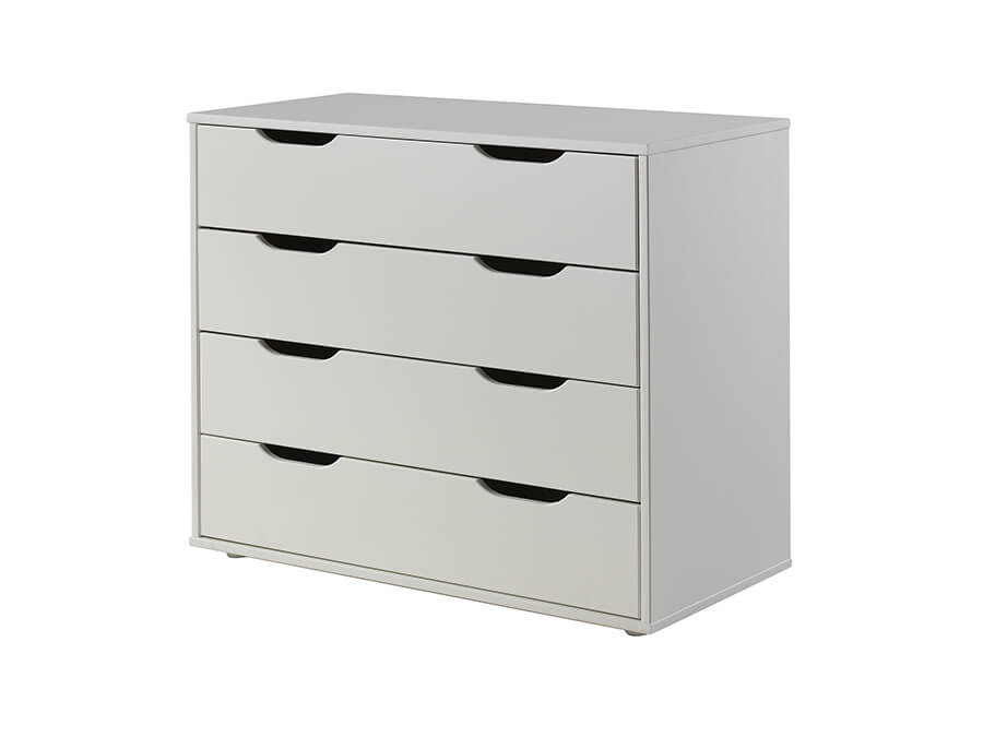 Sommige meubels zijn simpelweg onmisbaar op de kinderkamer. Een ladekastje is er daar één van, want nergens kunnen meer spullen in worden opgeborgen. Behalve dat alle rondslingerende spullen een plekje kunnen krijgen in dit PINO kastje met vier lades, heeft dit ladekastje nog een groot voordeel: het past precies onder de PINO halfhoogslaper. Er is dus geen extra ruimte nodig op de kinderkamer om dit ladekastje een plek te geven. Omdat het precies onder de halfhoogslaper past, ‘verdwijnt’ de PINO ladekast en vormt het een mooi geheel met het kinderbed. Het leuke van de PINO collectie is dat niet alleen dit ladekastje op deze manier gemaakt is. Ook het onderschuifbureau, de PINO boekenkast en het kastje met twee deuren zijn op maat gemaakt voor de PINO halfhoogslaper. Op één van de afbeeldingen ziet u een voorbeeld van hoe dit eruit kan zien op de kinderkamer als (een deel van) deze meubelen gecombineerd worden. Stijlvol en praktisch tegelijk!