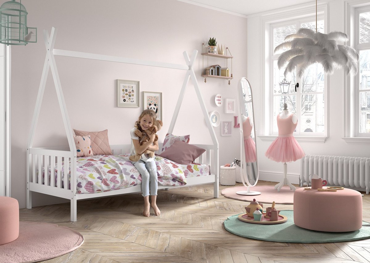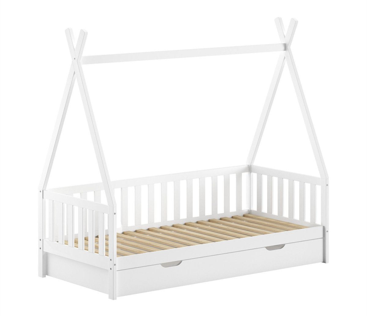 Deze set bevat de witte Vipack Tipi MH bedbank met bedlade. Bij het bed is een lattenbodem inbegrepen maar geen matras. Deze kun je gemakkelijk mee bestellen, evenals beddengoed.