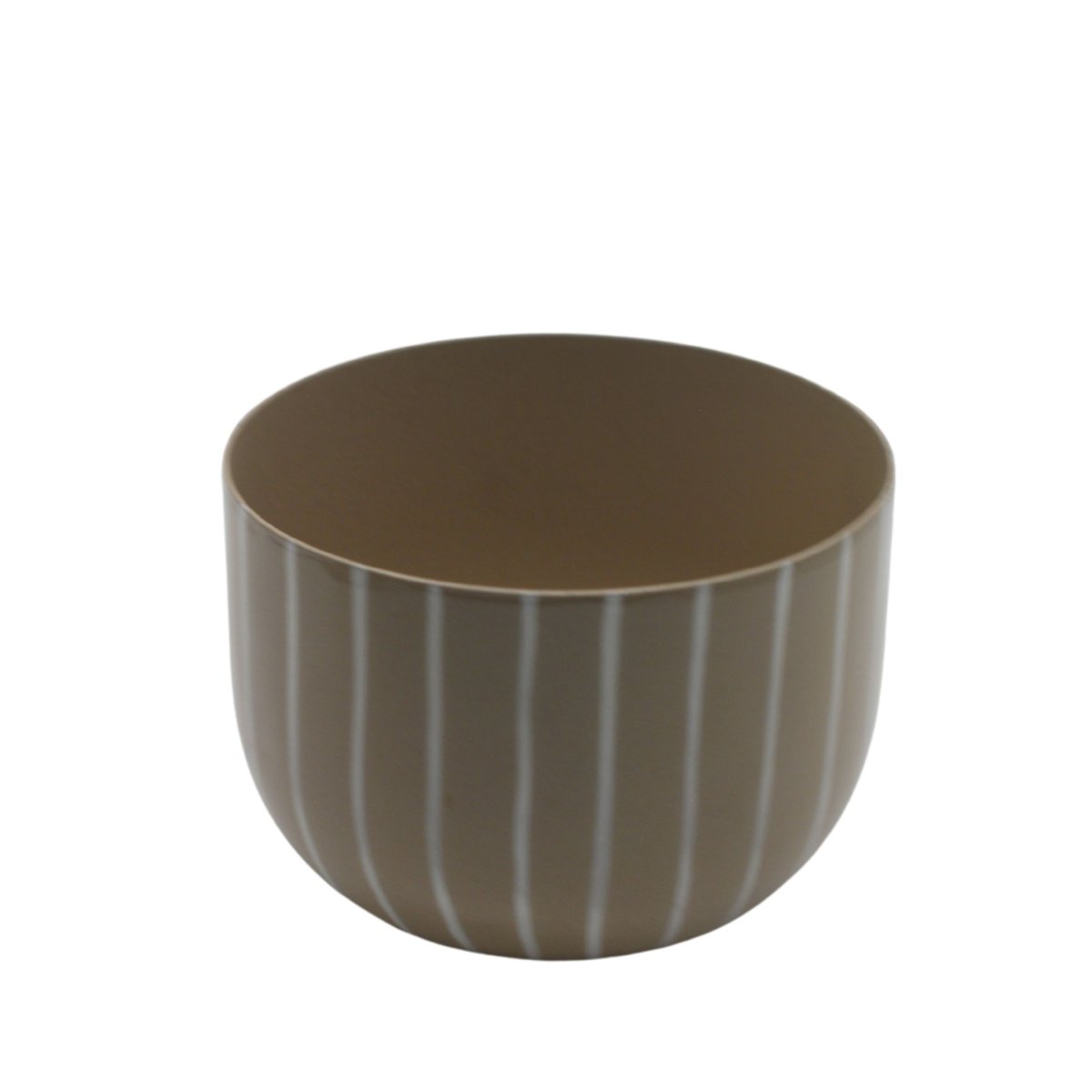 Zomerse metalen waxinelichthouder met in de kleur taupe met fijne witte lijntjes.