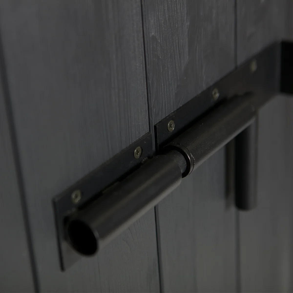 - Afwerking: Geborsteld grenenhout en zwart metalen details