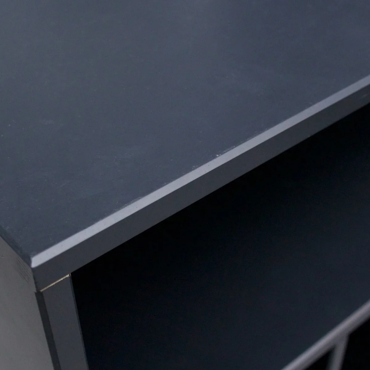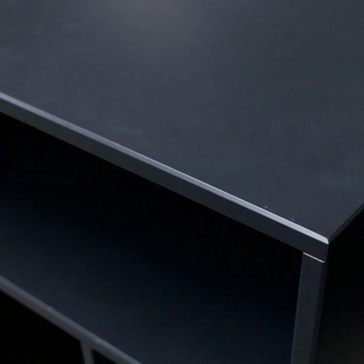 - Materiaal: Mat zwart gelakt grenenhout, MDF achterzijde met notenprint